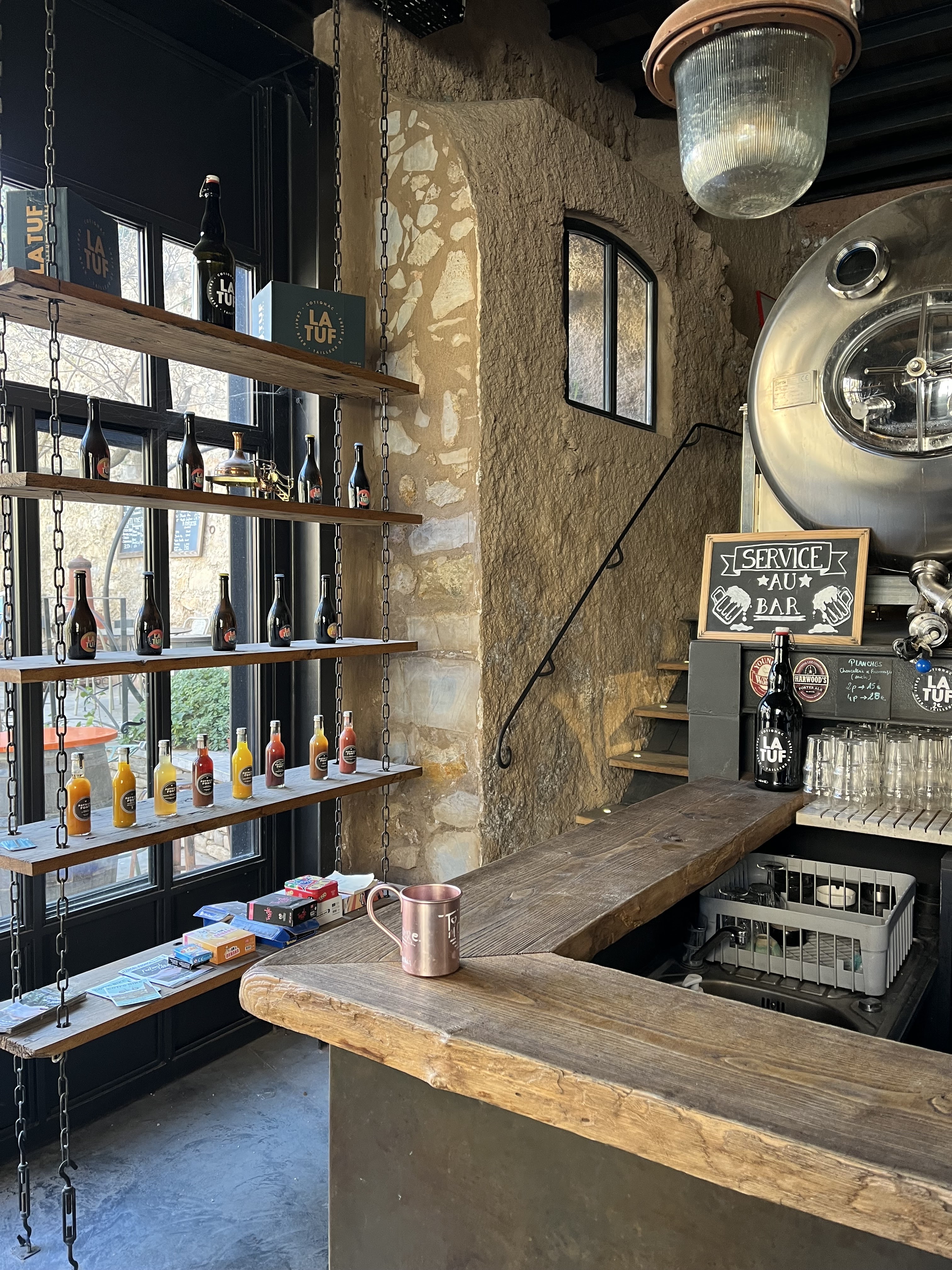C'est un lieu et un bar formidables. On peut voir les cuves de brassage, et si le brasseur est là, il est toujours ravi de partager ses connaissances en matière de fabrication de la bière. Et puis la terrasse offre une expérience provençale tellement relaxante. Le personnel est également très beau, ce qui aide toujours la bière à descendre !