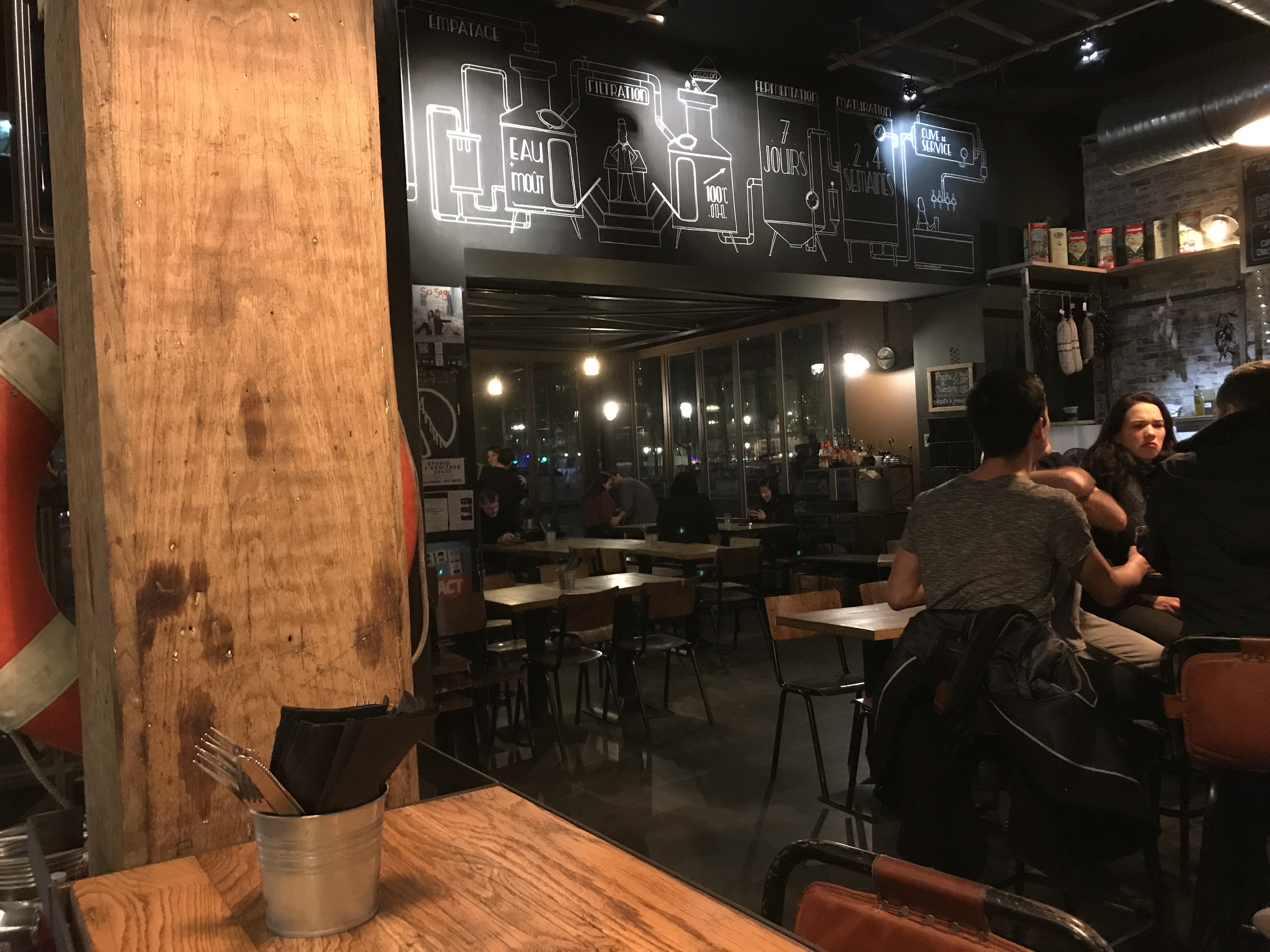 Posté le 26/11/2016 à 23:40"Il y a toujours une bonne raison pour aller au Paname Brewing Company. C'est bien situé, la terrasse surplombant le canal est agréable, il y a beaucoup de place à l'intérieur. Mais deux petites choses me chiffonnent. Au final, la bière, qui est chère, n'est pas excellente. Et la nourriture, pas donnée non plus, est inégale. Mais cela ne m'empêche pas d'y retourner."
